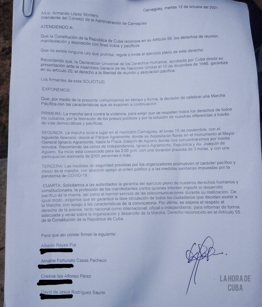 ÚLTIMA NOTICIA: CAMAGÜEY ACABA DE ENTREGAR EL DOCUMENTO PARA MANIFESTARSE EL 15 DE NOVIEMBRE